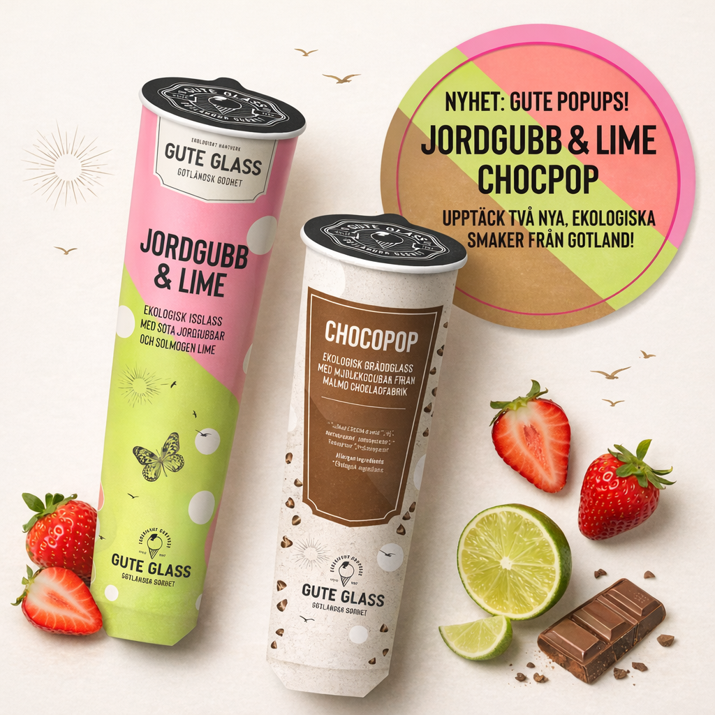 Gute Popup är tillbaka – nu med två nya smaker! Förra sommarens Gutti Frutti blev en sådan succé att vi inte kunde stoppa där. I år lanserar vi två nya smaker i vår populära popup-serie – ekologisk glass i smart förpackning, perfekt när du är på språng. Klicka vidare för att se alla våra nyheter.